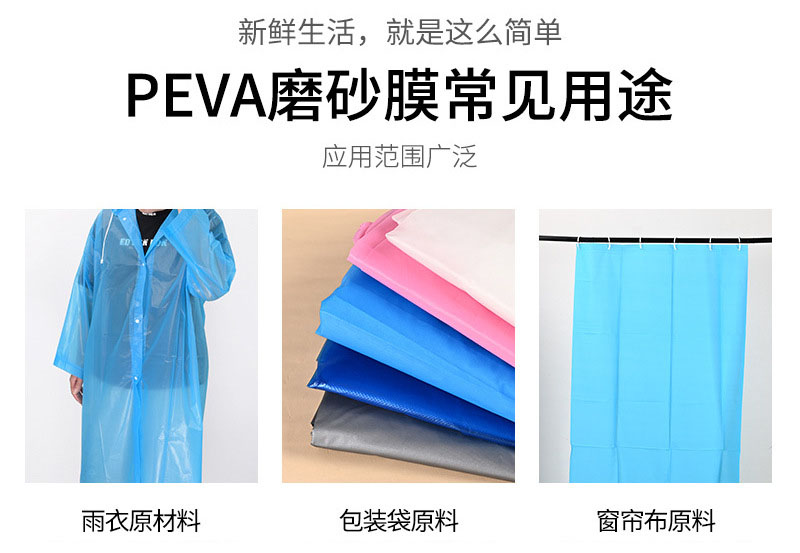 - PEVA有色薄膜有色半透磨砂雨衣料防水围裙面料高软高弹有什么用